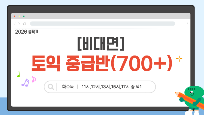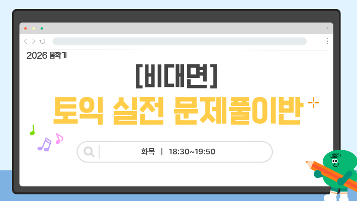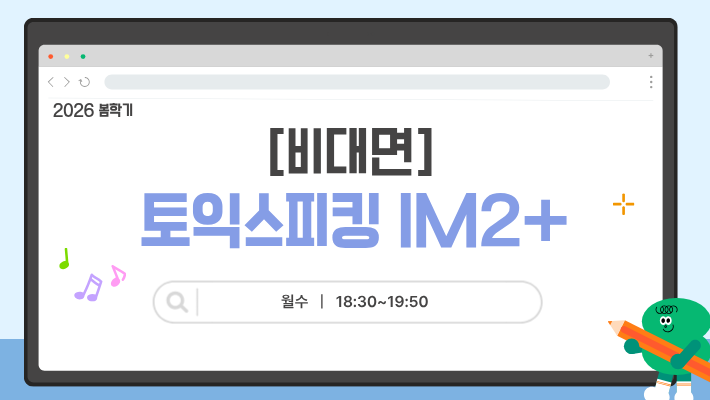 [기간] 2026-03-09 ~ 2026-05-27 [강의 시간] 주 2회(월수), 18:30~19:50 아이엘츠 듣기,읽기 준비